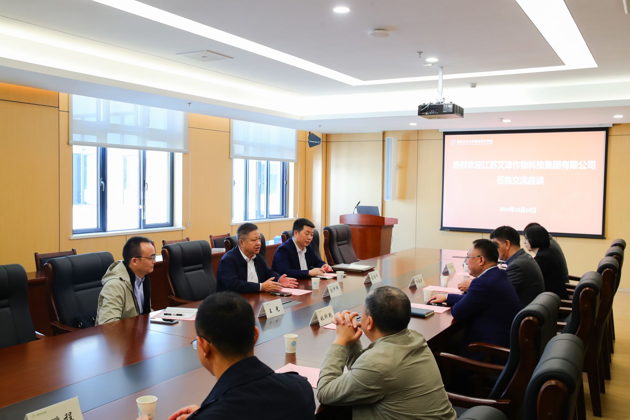 10月24日上午,江苏艾津作物科技集团有限公司董事长张申伟、副总裁屈继辉、市场与技术事业部副总经理王光来我校座谈交流。校党委常委、副校长单正丰接待了张申伟董事长一行。座谈会由H小说