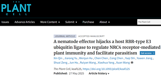 王暄教授课题组在国际权威学术期刊《The Plant Cell》发表最新研究成果,揭示南方根结线虫挟持寄主蛋白抑制植物免疫、促进寄生的分子机制。
