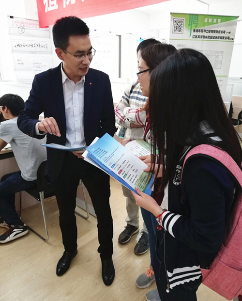在就业指导中心招聘大厅成功举办了2018届毕业生专场双选会。包括上海佳得安环境科发展有限公司在内共有34家公司参与了本次双选会。H小说