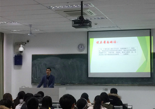 首先,黄绍华老师就学习对于大学生的重要性进行了强调,以此提醒同学们要做好期末复习,认真备战即将到来的考试。随后,就校纪校规、考风考纪、毕业要求、评奖评优标准、发展党员及获得推免资格的条件,详实地为在座的新生进行了讲解,引导学生明确目标,针对性地投入大学生活。此外,为了让学生们更直观地了解挂科的严重性,黄绍华老师列举了近两届本科生大一学年的挂科数据,以示警醒,并对大家今后的学习、生活提出要求和指导,希望同学们能走出最精彩的大学之路。