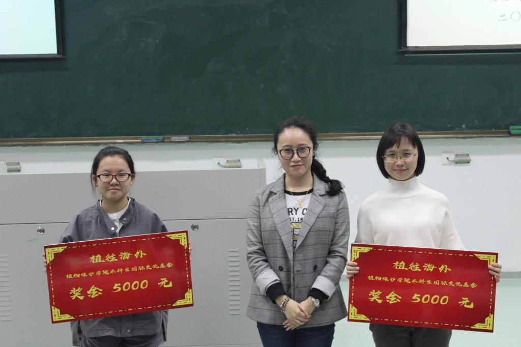 颁奖结束,由童院长上台为大家做说明。她首先提到了中国当代大学生的留学现状,着重强调出国留学的意义:1、自理自立2、读万卷书行万里路。接着分析了近五年来,植保留学生的情况,对各个留学项目都做了简要的说明。薛兰以己为例,上台讲述了自己的学习经验和访学经历。