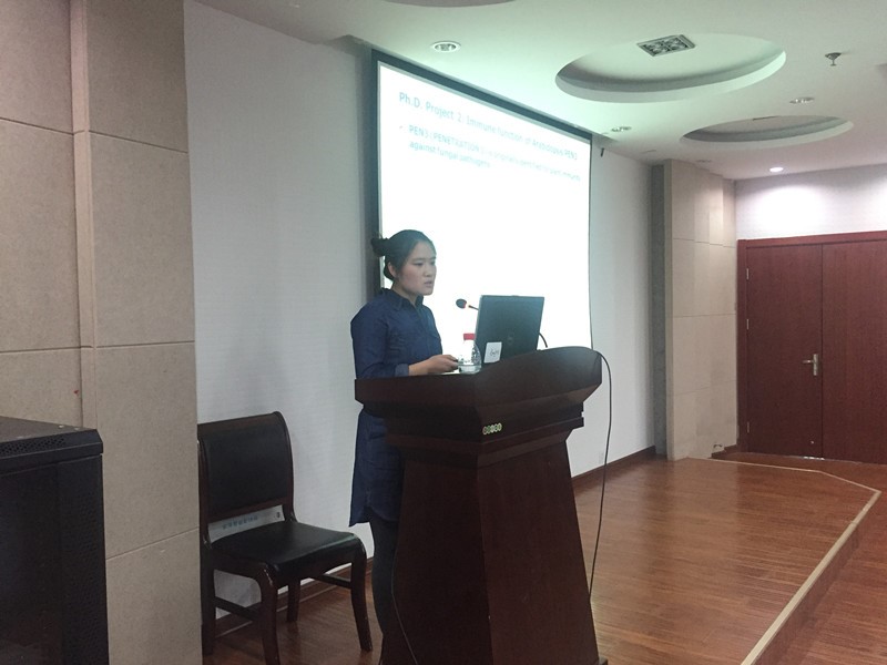 邀请,美国密歇根州立大学博士后辛秀芳在理科楼C303做了题为“plant-microbe interactions:climate and microbiome influences”的全英文学术报告,学院党委书记吴益东、院长王源超、副院长张正光、副院长叶永浩、系主任和相关教师以及植保学院研究生参加了本次报告会,院长王源超主持会议。