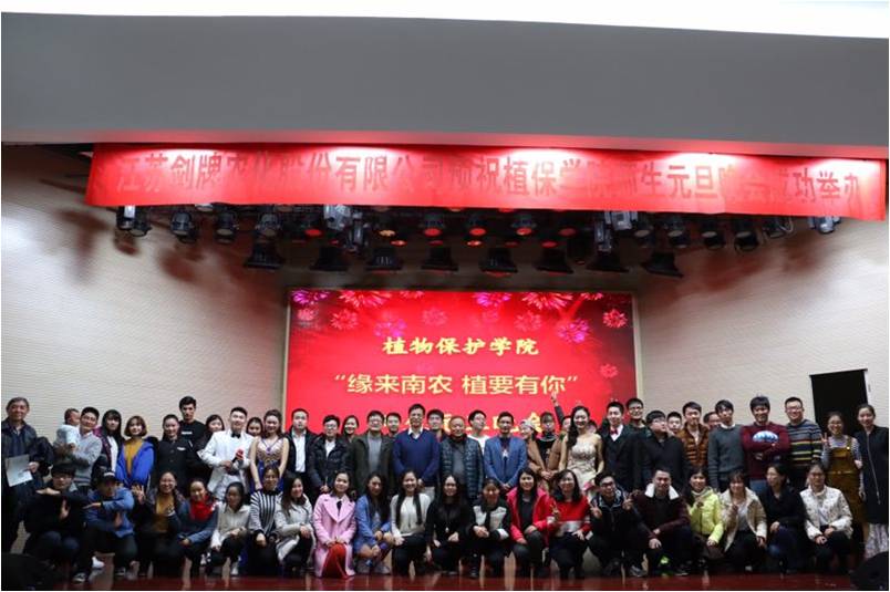 中心隆重举行。晚会由江苏剑牌农化股份有限公司独家赞助。植保学院院长王源超、江苏剑牌农化股份有限公司副总唐为舟、经理袁剑乔、植保学院党委副书记黄绍华、副院长叶永浩、校人事处副处长刘泽文、研究生团工委书记杨海峰、植保学院翟保平教授,植保学院教师张海峰、赵春青、吴顺凡、侯毅平、宋修仕、牛冬冬、张聪、王晓莉、于娜、张懿熙、学院研究生教学秘书岳丽娜、研究生辅导员吴智丹及各院研究生会主席等50余位嘉宾出席晚会。