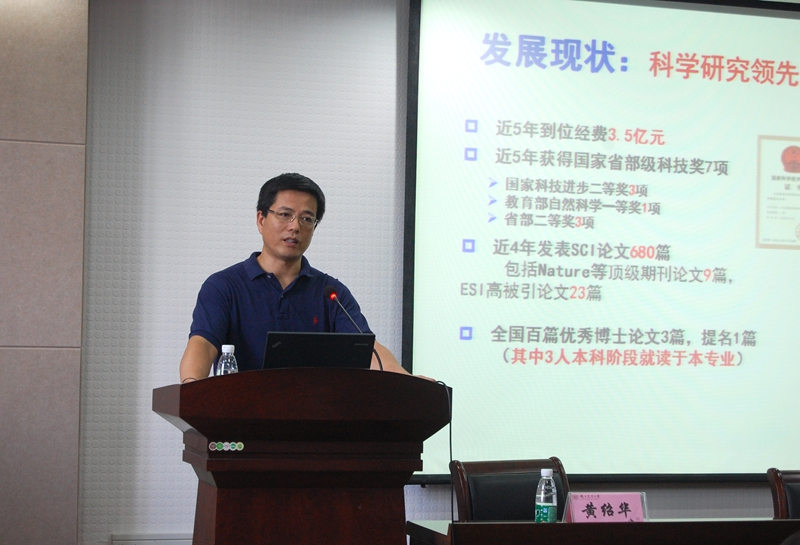 会议中,王源超围绕学校情况展开了详谈。当谈到学校雄厚的师资力量,丰硕的科研成果和一流的科研平台时,王源超脸上泛起丝丝自豪。看着稚嫩的新生,他语重心长地说道:“上了大学,你们要走出高中学习的模式,把被动变为主动,明确兴趣、学习目的及方向,以更好地适应大学学习。”