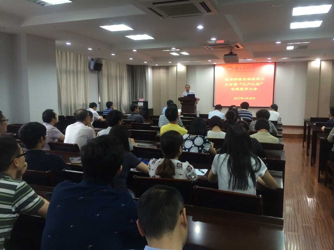 全体教职工大会暨“三严三实”专题教育大会在理科楼C303召开。会议由H小说