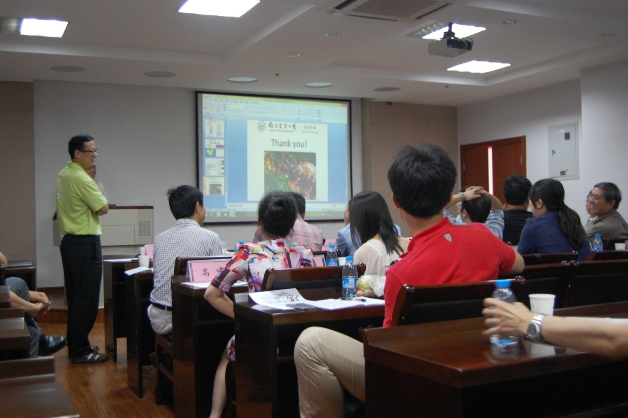 吴益东教授向来宾表示欢迎,介绍了植保学院的组织架构,以及昆虫系的科研环境和研究方向;并建议我校和中国农大植保教学科研人员,要紧紧围绕国家需求,相互协作、共同发展。沈杰教授介绍了中国农业大学昆虫学系主要研究方向和人员,对南农大昆虫系为成功举办本次交流会的组织和安排表示感谢。