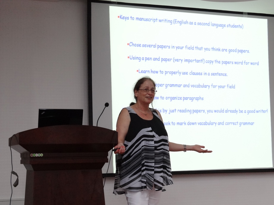 访问期间,Anne Simon教授为全校师生作了两场题为“Ribosome Recoding in Turnip crinkle virus (TCV) and Pea enation mosaic virus (PEMV)”和“Involvement of RNA Silencing in Second-site Mutation Compensation for 3'UTR Mutations”的学术报告,详细介绍了其最新的研究进展。值得一提的是Anne Simon教授具有多年担任本领域重要学术期刊编辑的经历,现担任Frontiers in Virology co-Editor-in-Chief(2011-present),Applied and Environmental Microbiology Associate Editor (2005-present),Journal of Virology Editor (2007-2017) 等职务,因此,Anne Simon教授特意为我校年轻科研人员作了题为“How to prepare a manuscript and insights into the process of manuscript reviewing”的培训报告,她从从编辑的角度讲述了科技论文写作和投稿相关技巧,以及如何成功征服编辑和审稿人。报告期间,Anne Simon教授参观了我校H小说