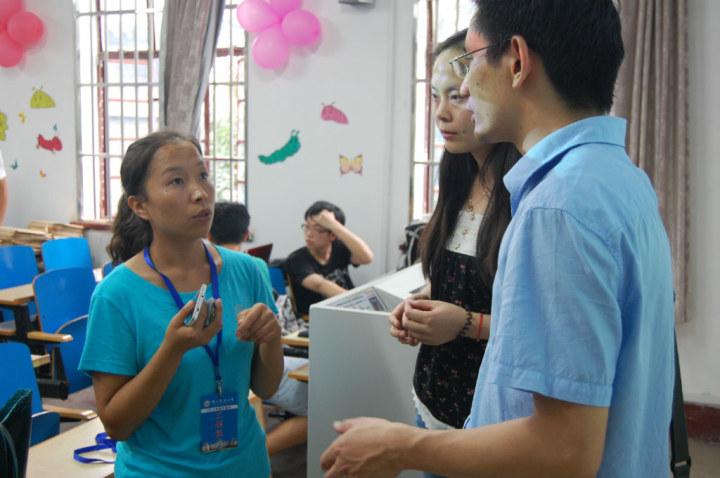 ”字样的指示牌,迎接新生。迎新教室已被装饰一新,墙壁上的植物和昆虫照片极好地体现了植保专业的学科特色;绿色彩纸制作的藤蔓悬挂着简单明了的报道流程指示图,引导新生顺利完成注册。接待过程中,学生干事们细心周到地引导新生办理报到手续,新生们被赠予由学长学姐们亲手写下的祝福卡片,并在植保家谱上签下名字,象征着自己成为植保家庭中的一员。学长学姐们在主楼的报到处与新生宿舍间往返穿行,将新生送达宿舍,并帮助他们一步步熟悉校园环境。