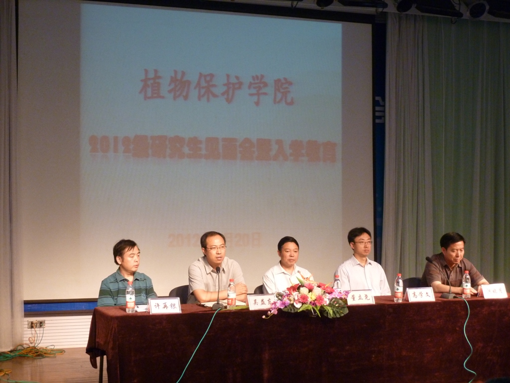 2012年9月20日上午,植保学院2012级研究生见面暨入学教育大会在教四楼报告厅成功举行,院党委书记董立尧、院长吴益东、副院长高学文及昆虫系主任洪晓月出席,会议由副书记许再银主持。