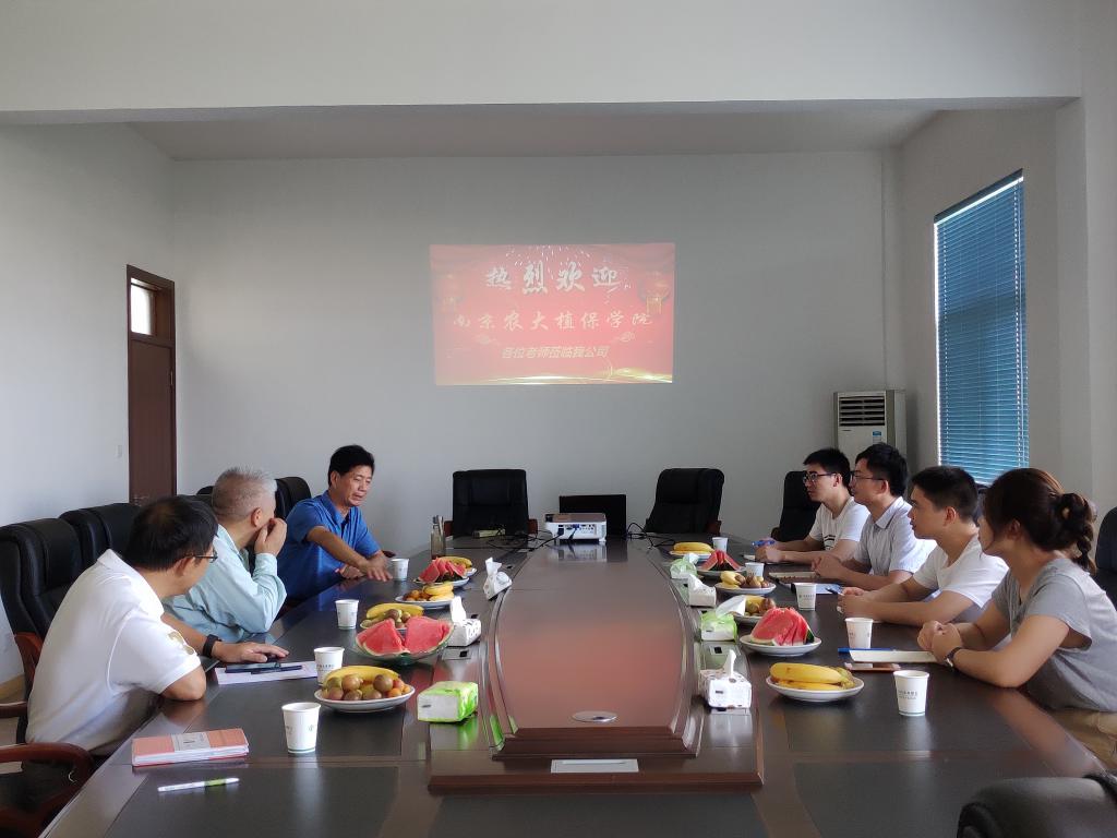 7月22日,张峰一行与浙江新安化工集团农业服务部副总经理陈建红、研究所所长秦龙、人力资源副总监吴宗生、运营副总经理黄云鹏等进行座谈,听取公司发展概况及主要产品介绍,双方深入探讨农业现代化背景下农药的研发、生产、销售和植保技术服务于一体的发展模式存在的问题及行业未来发展前景,并就人才招聘、学生实习、就业指导等校企深度合作事宜展开探讨。