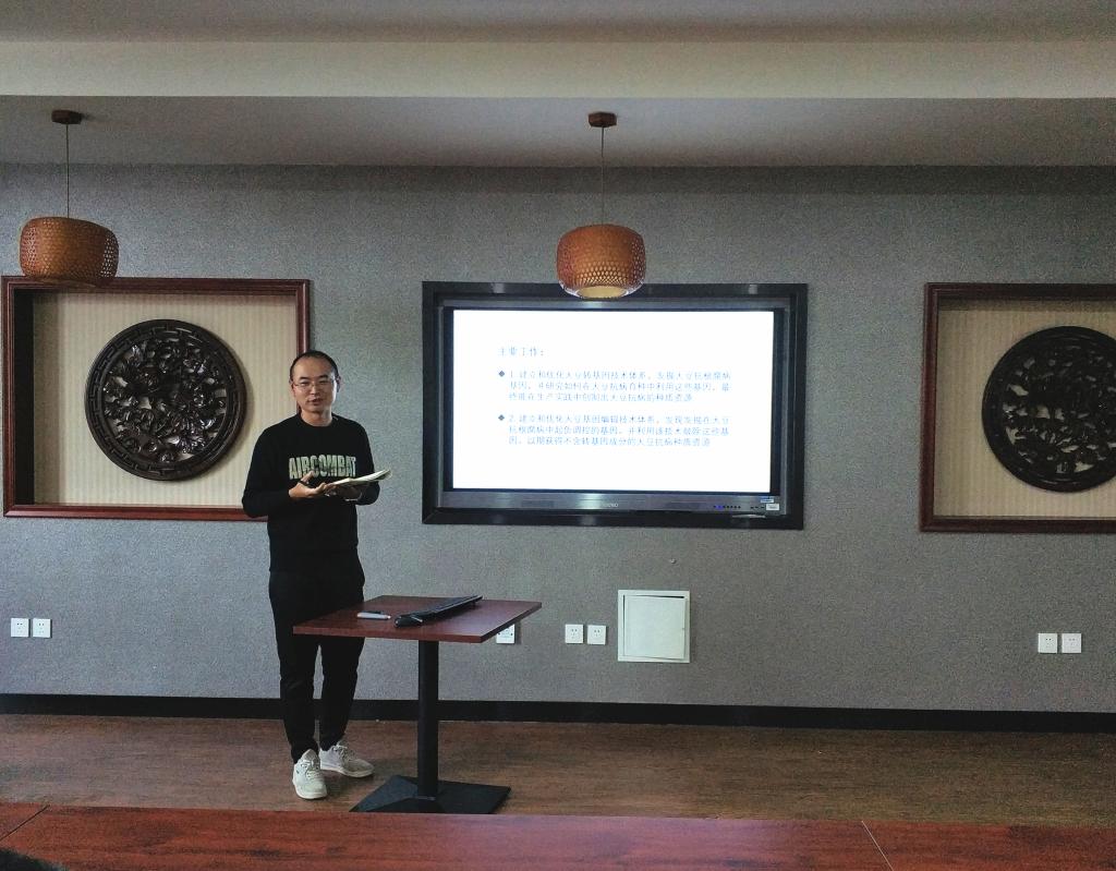 段凯旋介绍了自己研究内容“植物转基因及其应用”,介绍了自己如何结合植物转基因改良作物抗病性的研究目标,整合团队和自身优势,依托团队制订未来长期的研究方向。