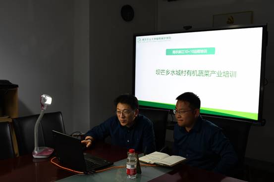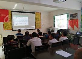 党委在理科楼党员学习室举行科技扶贫远程培训,课堂另一端是学院党委对口帮扶村——贵州麻江县坝芒乡水城村。