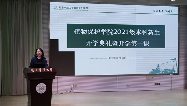 老生代表植保182班姚天池以大四学长的身份分享了在南农植保院的学习体验。他认为,现阶段所学习的基础学科是未来践行梦想的基石,学院所提供的实践经历和亲身体验是每位农科学子不可多得的宝贵机会。他向新生们详细地介绍了植保院保研细则、srt项目和一对一导师等实利于学子的各项制度。他真诚建议同学们深入了解植保学院的深厚底蕴和时代使命,并期待大家尽情探索自己筑梦蓝图的大学生活。
