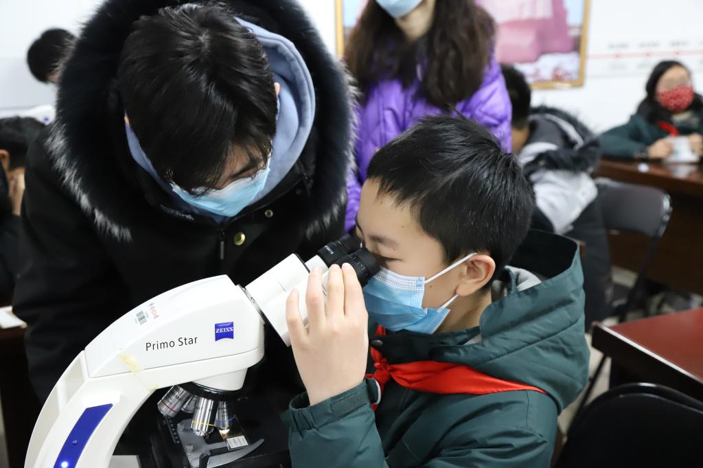 在“科普活动”环节,同学们在志愿者的带领下,用显微镜观看植物病原菌玻片,揭开植物病害的“神秘面纱”,窥见奇妙多彩的“微观世界”。现场的手绘科普读物,更让同学们对植物病虫害知识、家居植物养护常识有了进一步的了解。