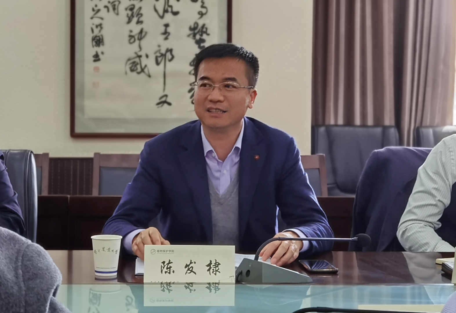 陈发棣充分肯定了学院在各方面取得的工作成绩,并从四个方面对学院发展提出了指导意见和具体要求。一是要围绕国家发展战略和学校发展要求,高站位做好顶层设计。围绕“四个面向”,系统思考、科学定位、准确凝练学科发展方向,切实为国家绿色农产品供给贡献植保力量。二是要坚持问题导向,破解发展难题。要靶标国际科技发展前沿,根据国家对农业和高等农业教育的要求,主动发现短板,积极突破瓶颈。三是坚持目标导向,凝聚发展合力。围绕十四五期间学院发展重大目标,整合学院力量,努力实现新的突破。四是勇于创新、敢于创新,加大改革力度,调动发展积极性。以KPI绩效考核改革为契机,科学设置分配方案,发挥绩效激励作用,带领学院教职工抓住机遇、踔厉奋发,促进学院更高质量、更高水平发展。