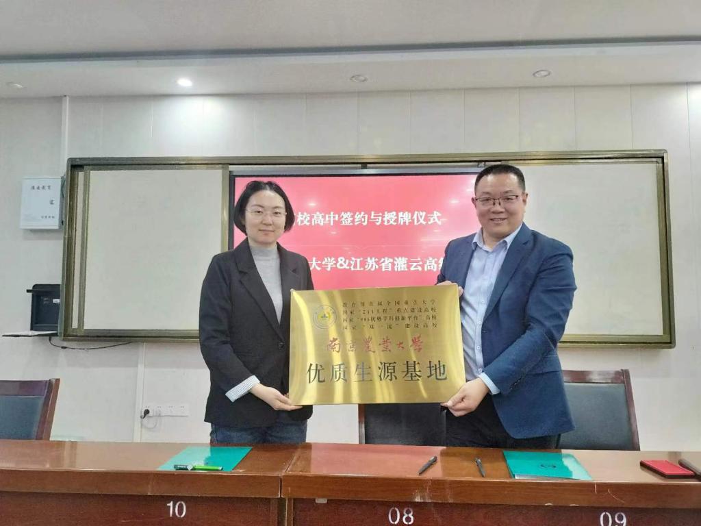 优质生源基地”共建协议并举行授牌仪式。在走访江苏省新海中学期间,参加新海园2023年大学节开幕式,并与中国科学技术大学一道作为仅有的2所高校代表发言,详细介绍学校情况,扩大南农知名度和影响力。期间招生组还就在苏招生计划、招生专业、往年录取分数以及就业前景、升学前景等方面对前来咨询的学生和家长进行现场解答,获得了在校学子和家长们的广泛关注。