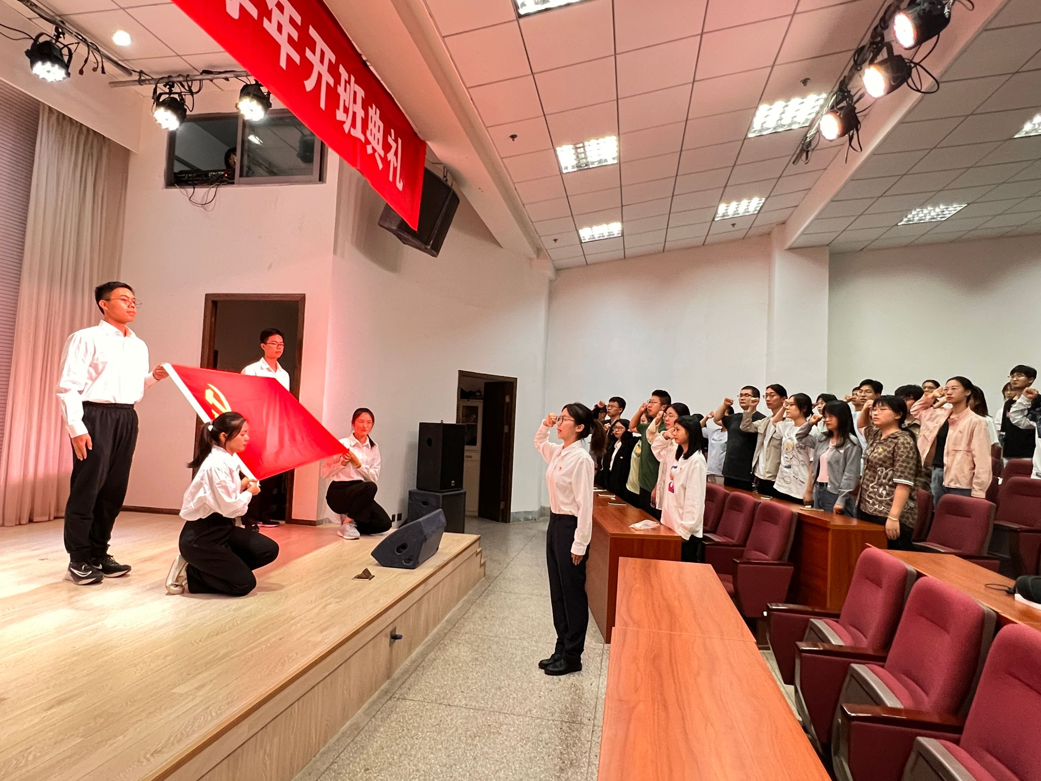 在党员张紫涵的领誓下,27名新发展的预备党员进行了入党宣誓。伴随洪亮的宣誓声,各位预备党员许下了对党的庄严承诺。