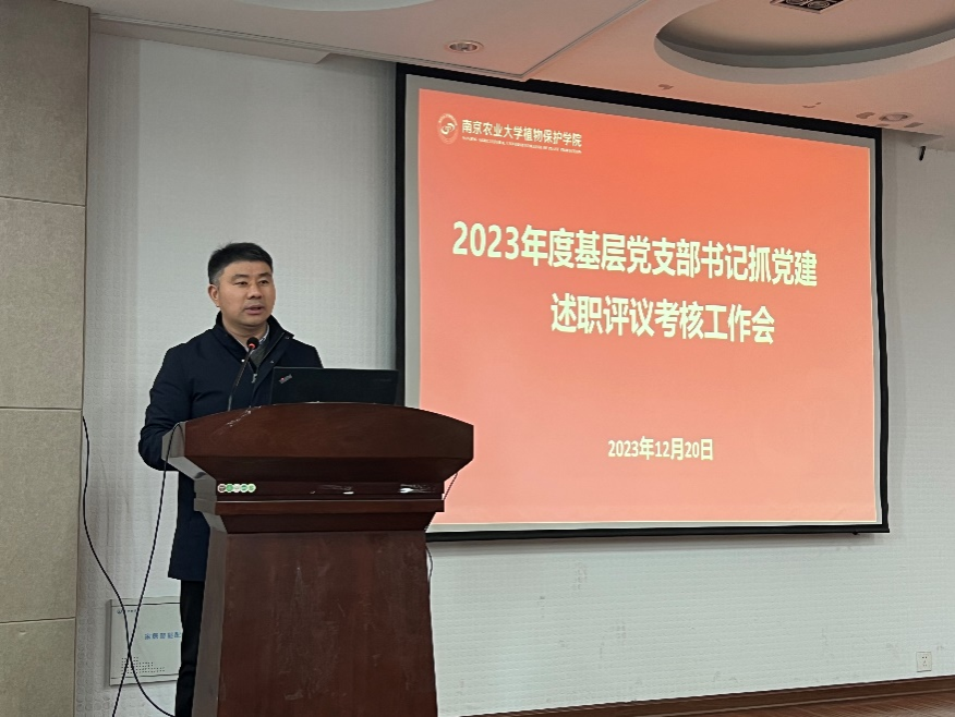在理科楼C303会议室召开2023年度党支部书记抓党建述职评议考核会议。校党委组织部副部长施雪钢,第一督查组成员毕彭钰、刘丹,学院院长张正光、院党委副书记吴智丹、全体党支部书记、党员代表参加了会议。会议由院党委副书记(主持工作)许承保主持。