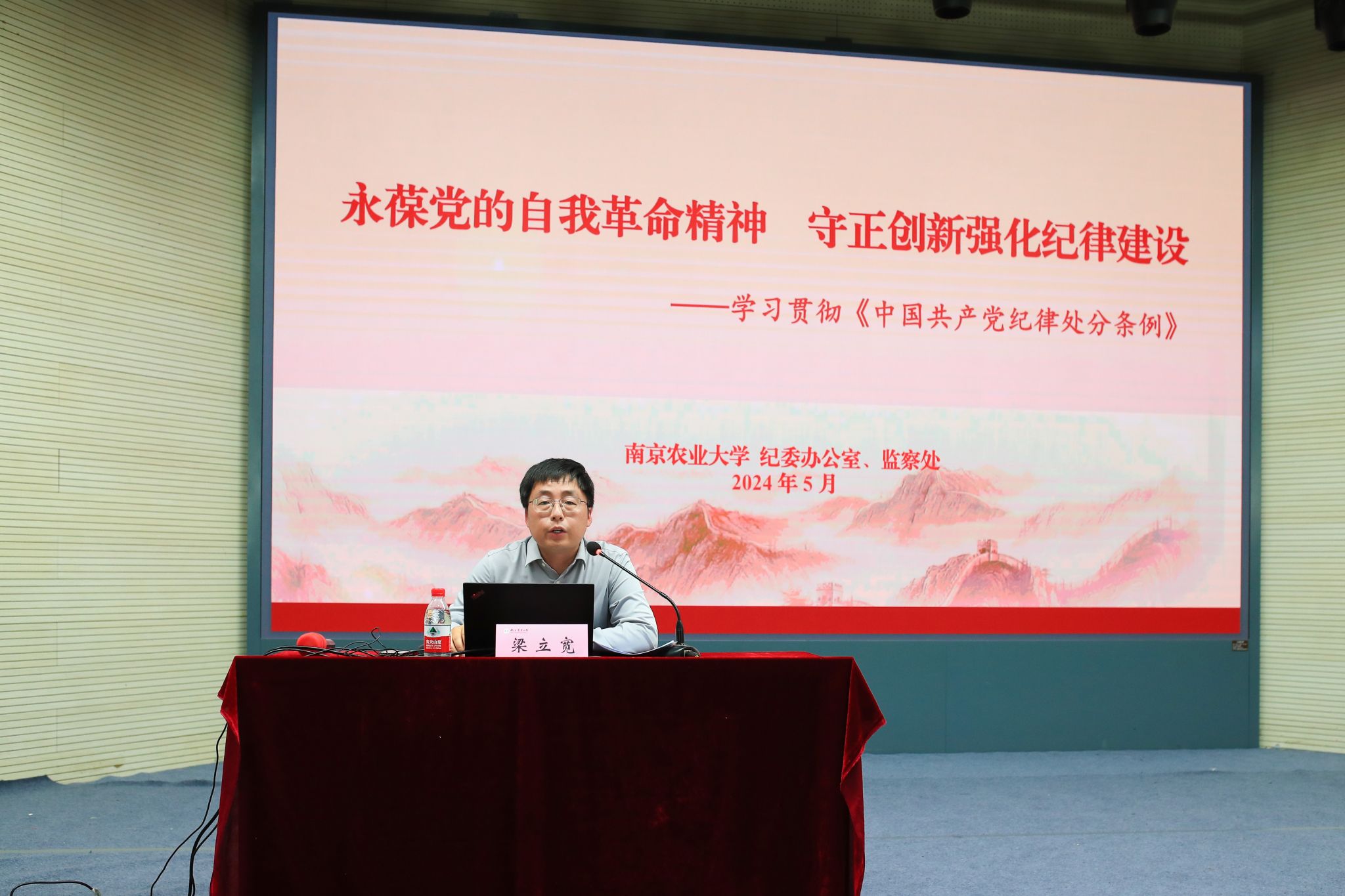 梁立宽以“永葆党的自我革命精神,守正创新强化纪律建设”—学习贯彻《中国共产党纪律处分条例》(以下简称《条例》)为题作辅导报告。他从《条例》修订背景及意义、《条例》修订的主要内容、《条例》精神的贯彻落实”三个方面,通过对比修订重点、引入具体案例、结合学校工作实践等方式,对新修订的《条例》进行详细解读。报告内涵深刻,内容丰富,既有客观理性的分析,又有具体生动的阐述说明,使大家对《条例》有了更加全面、更加深刻的认识,为学院党委在党纪学习教育中抓好《条例》的学习贯彻提供了重要的方法指导和路径指引。