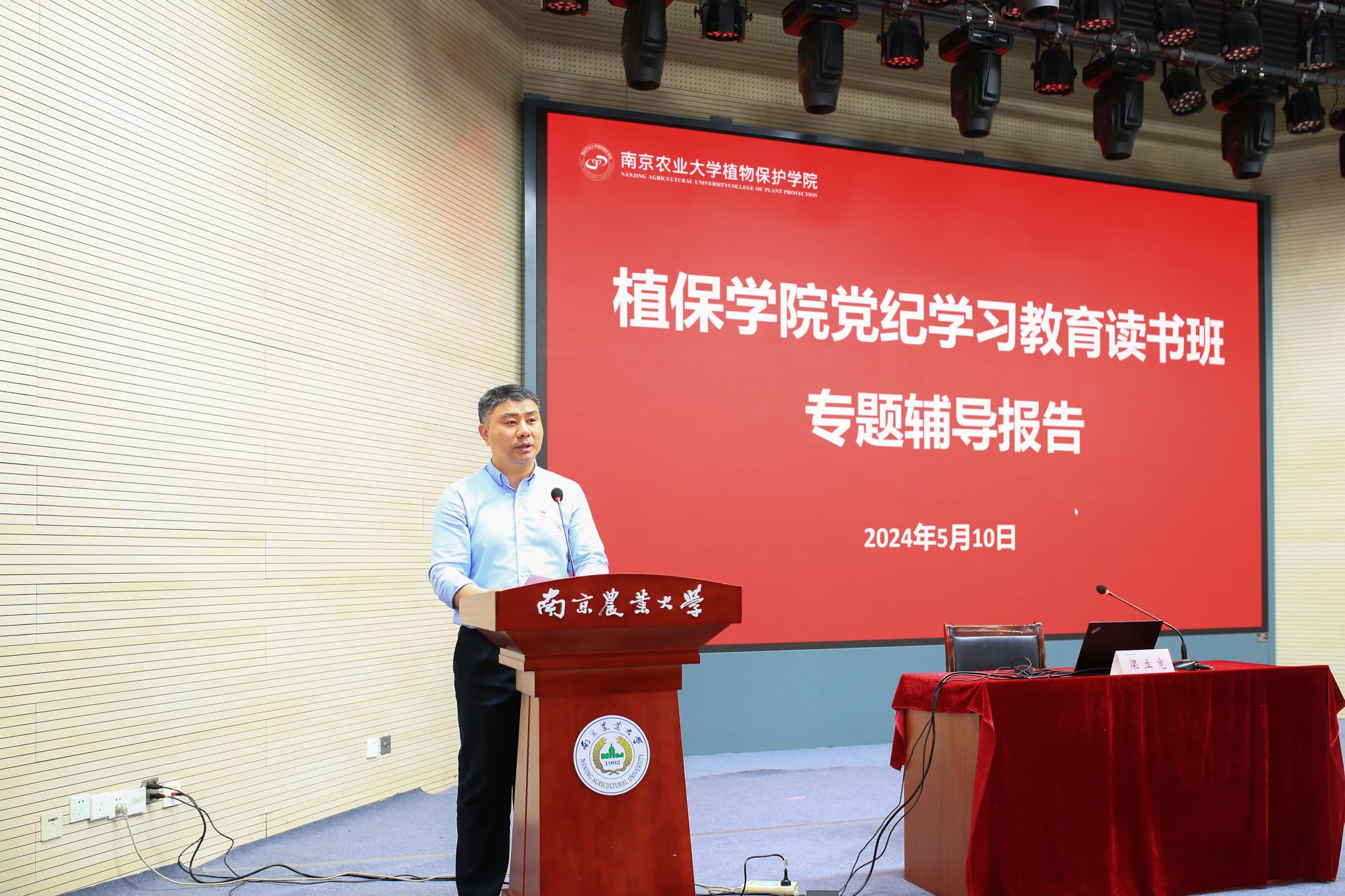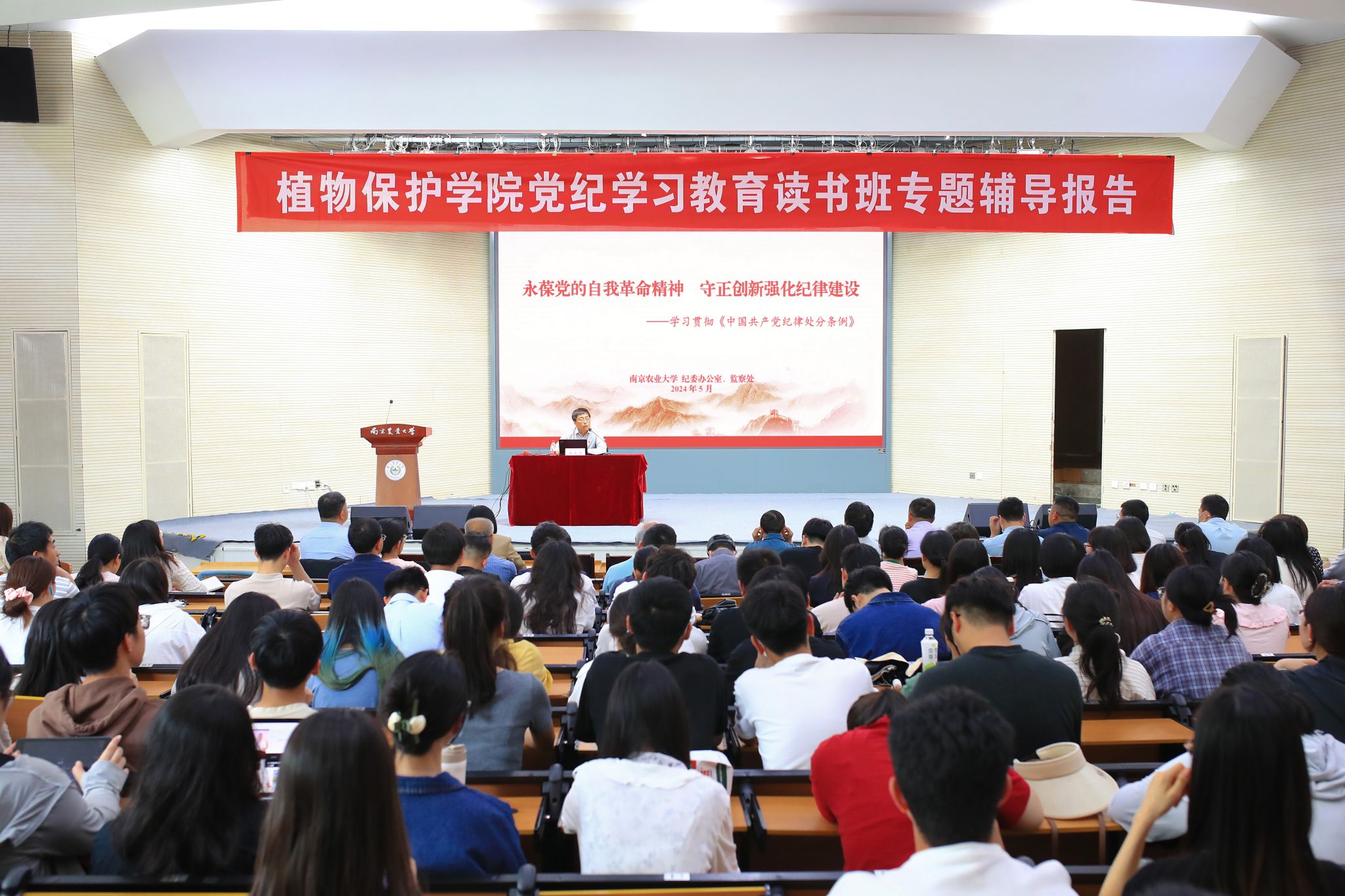 举办党纪学习教育读书班专题辅导报告,邀请学校监察处副处长(主持工作)、纪委办副主任、梁立宽作专题辅导报告,院领导班子、师生党员共计400余人参加学习。报告由学院党委副书记(主持工作)许承保主持。