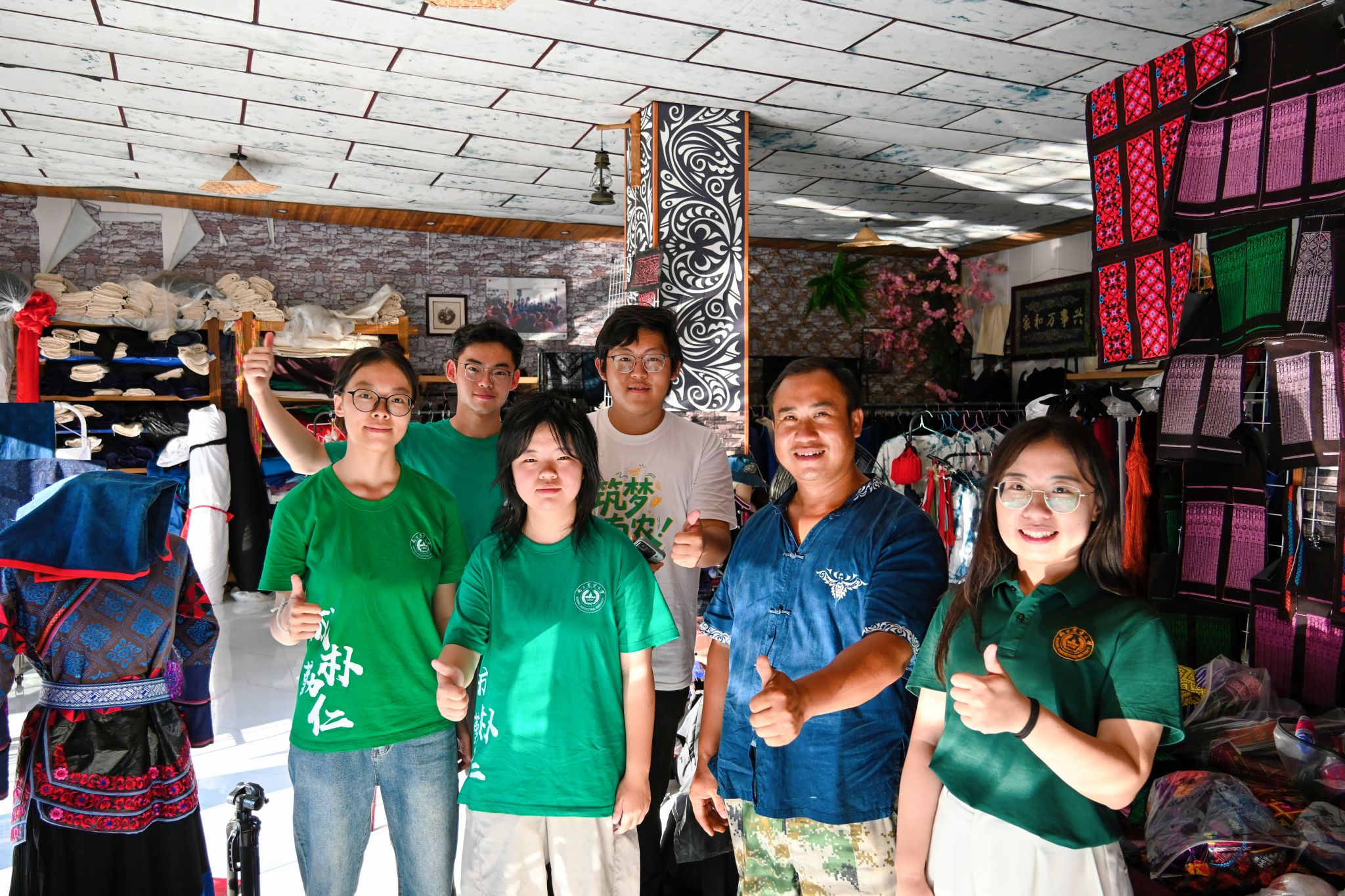 团队在麻江瑶之韵成秀文化工坊与龙全成合照