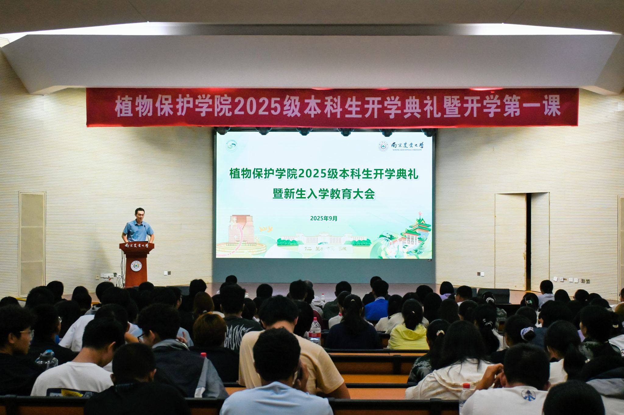 2025级本科生开学典礼上发表讲话,向新生表示欢迎,他提到,植物保护专业事关国家粮食安全、生态安全和农产品质量安全,并指出南农植保学科底蕴深厚、师资一流。他对新生提出三点期望:一要勤学求真,夯实专业基础,做到知行合一;二要修身立德,锤炼综合素养,培养独立思考与团队协作能力;三要志存高远,将个人理想融入乡村振兴和农业强国建设,勇担强农兴农时代使命。学院将全力支持学生成长,希望新生在南农植保学有所成、不负韶华。