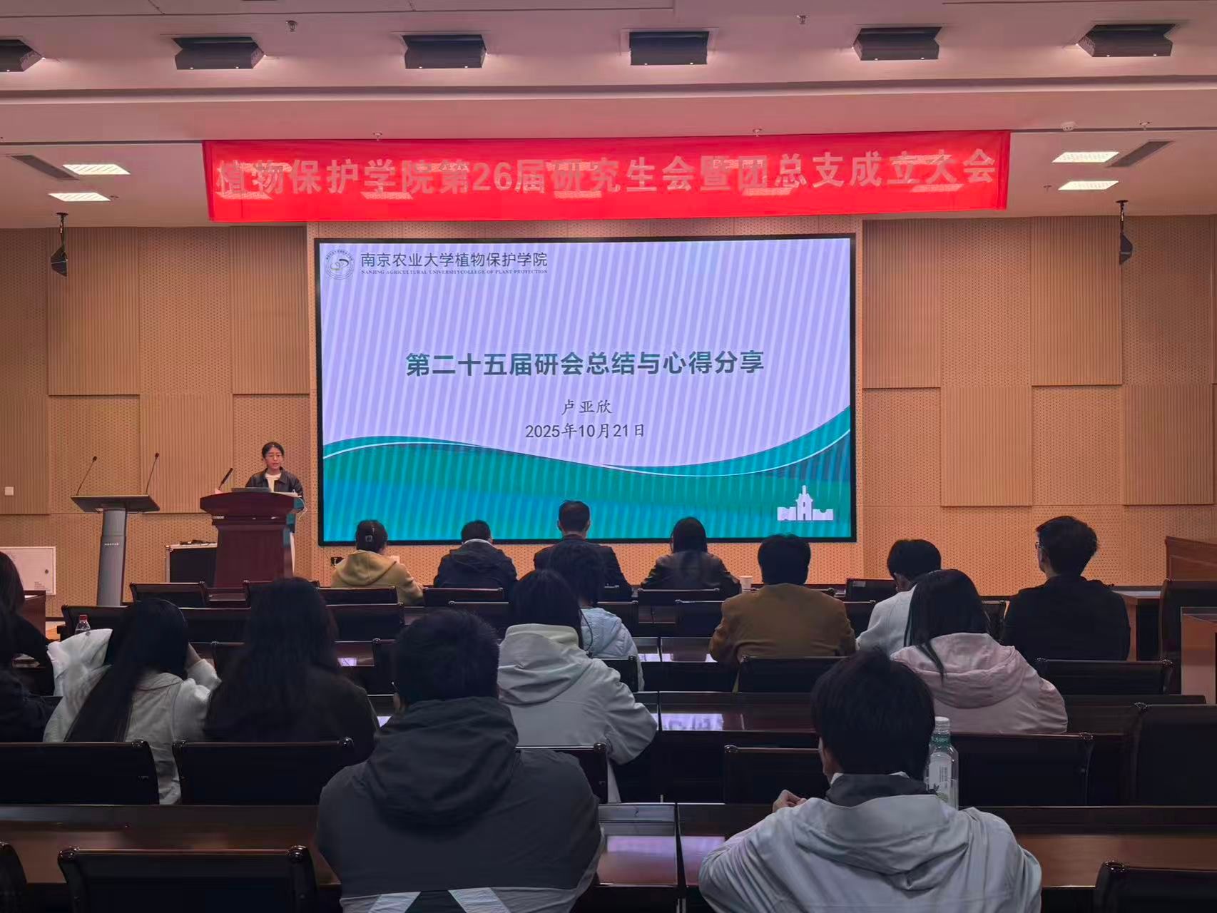 在21号楼114会议室召开第26届研究生会暨团总支成立大会。学院党委副书记陈志亮,研究生辅导员罗舜文、鞠然然,校研究生团工委副书记潘星颖,学院第25届研分会执行主席卢亚欣出席会议,学院第26届研分会全体成员、2025级研究生新生班长和团支书参加了会议,会议由学院第26届研分会办公室干事周锦鸿主持。