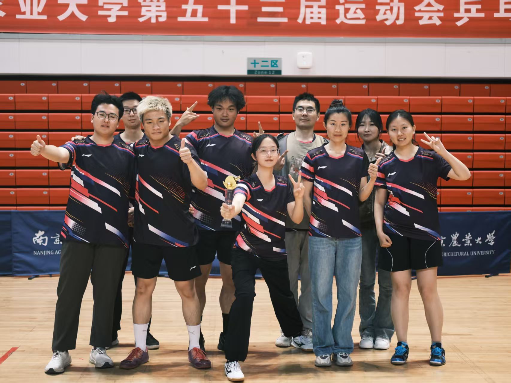 第五十三届运动会在卫岗校区田径场盛大举行。植保师生们携手并肩、踊跃参赛,在本届校运会中喜获团体总分第六和体育道德风尚奖,更在团体项目中历史性获得篮球、乒乓球、排球等4项冠军,在男子200米、女子1500米、男子教青、教中100米等5个项目中夺得金牌。