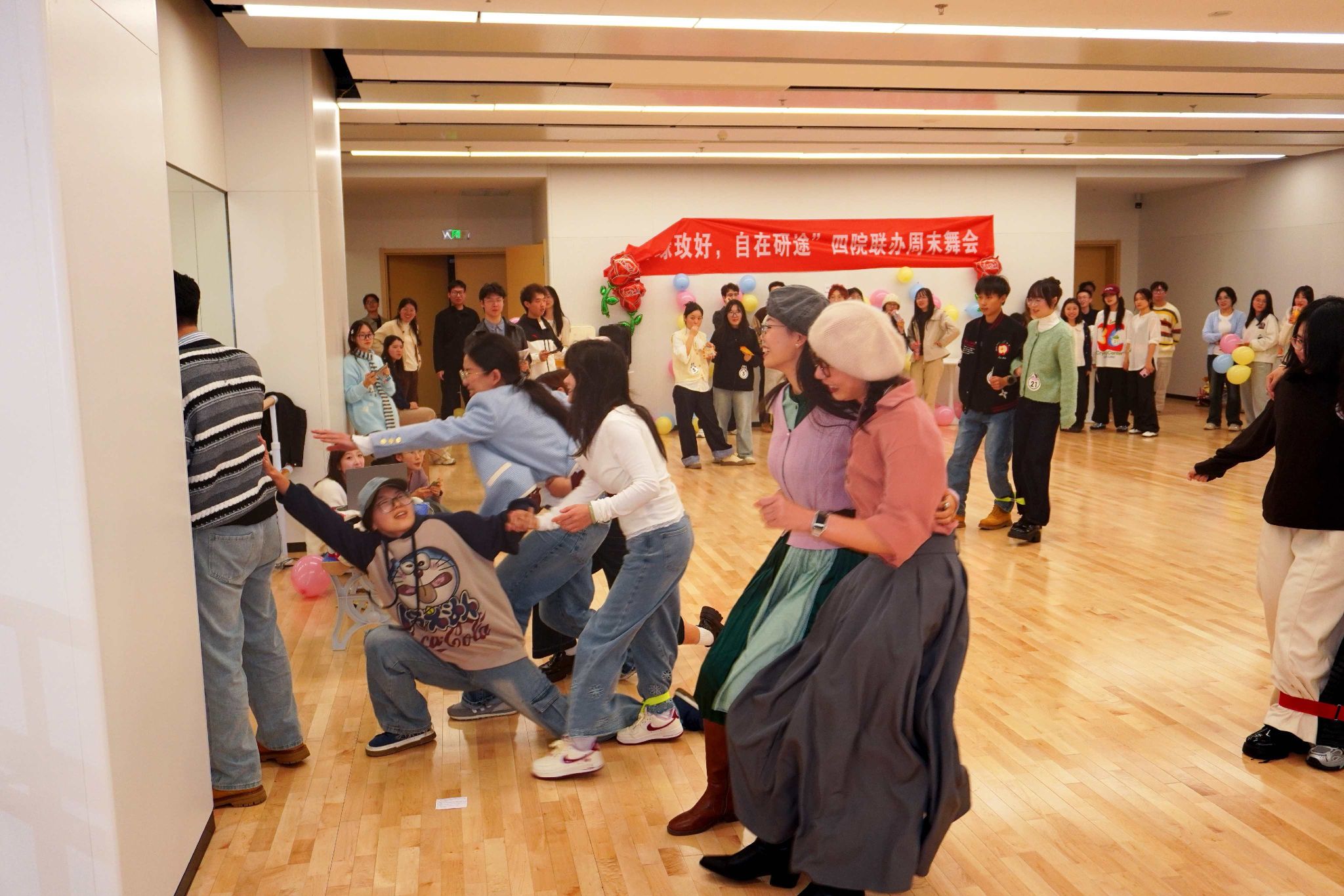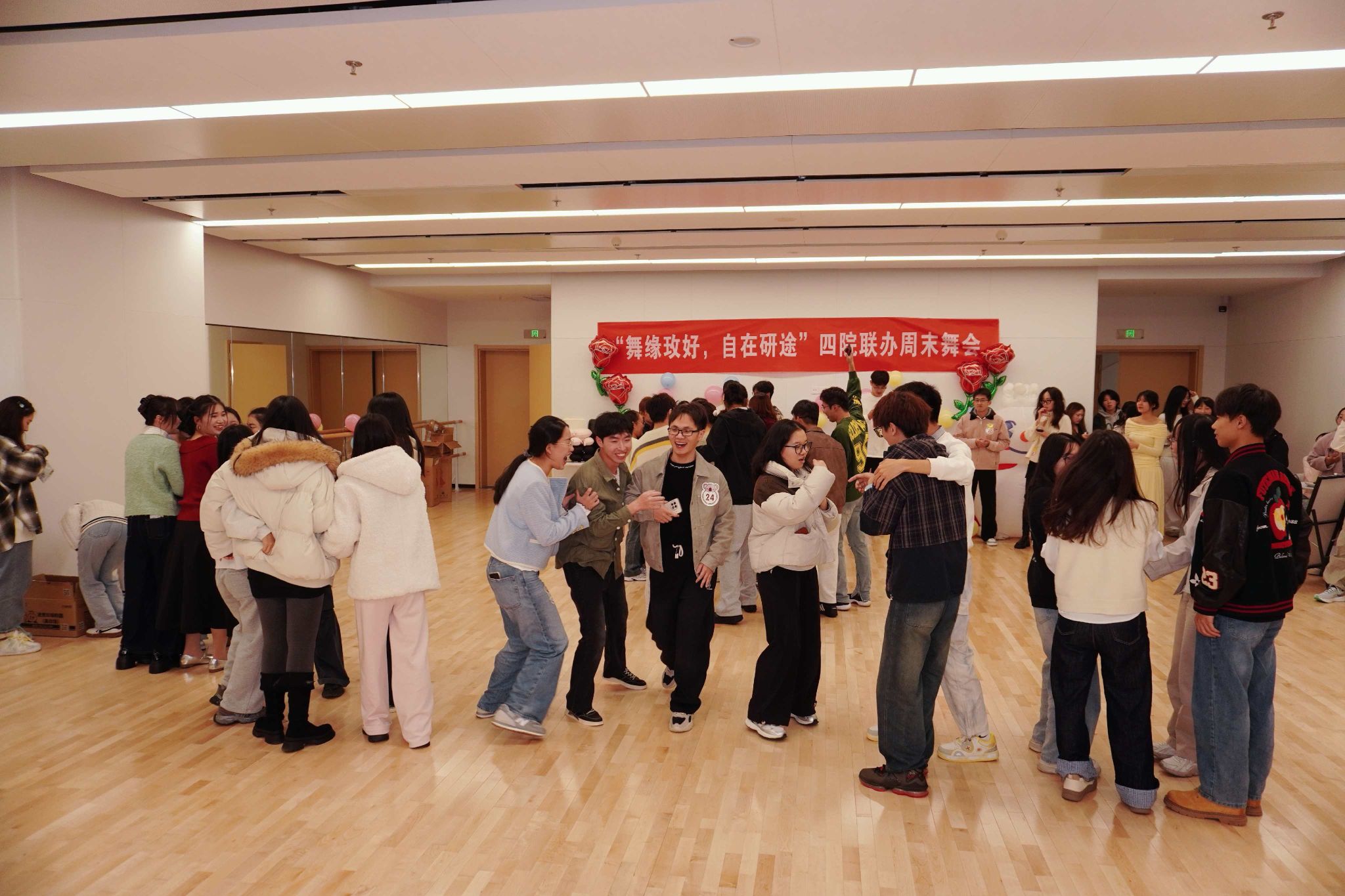 至此,“舞缘玫好,自在研途”四院周末舞会圆满落幕。这个夜晚,同学们不仅收获了欢乐与礼品,更很好地诠释了“无需等待谁的许可,不必迎合任何眼光”,勇敢地展示自我,结识挚友。愿这支秋夜的玫瑰,永远绽放在每位参与者的“研途”记忆之中,芬芳而耀眼。