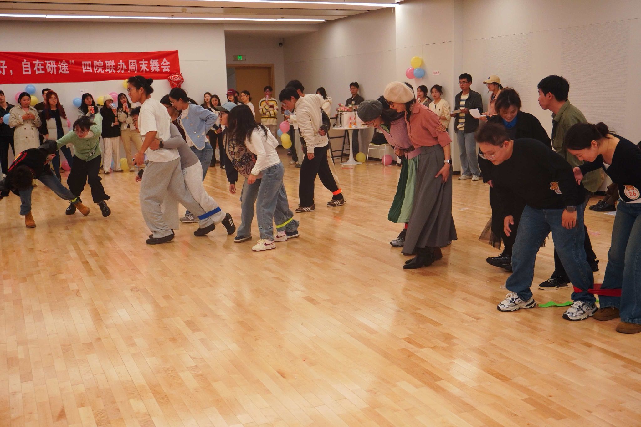 食品科技学院博士生吴国俊以一曲《一千年以后》引发全场深情大合唱,星光点点,歌声共鸣。随后的“两人三足木头人”游戏考验着搭档间的信任与协调。