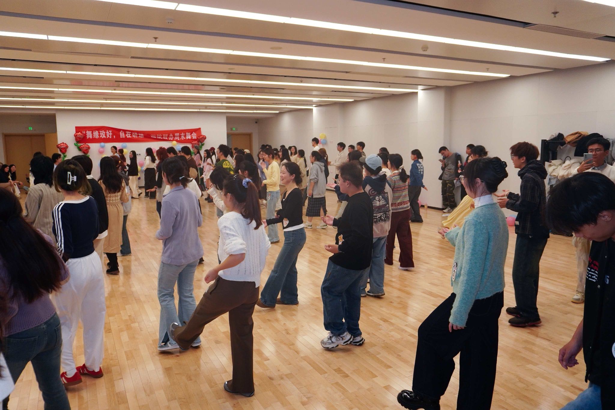 研究生易琦玮和李想同学耐心细致的《爱的华尔兹》教学环节,许多零基础的同学勇敢地迈出了第一步。他们携手旋转,步履从生涩到流畅,自信与优雅在舞步中悄然生长。