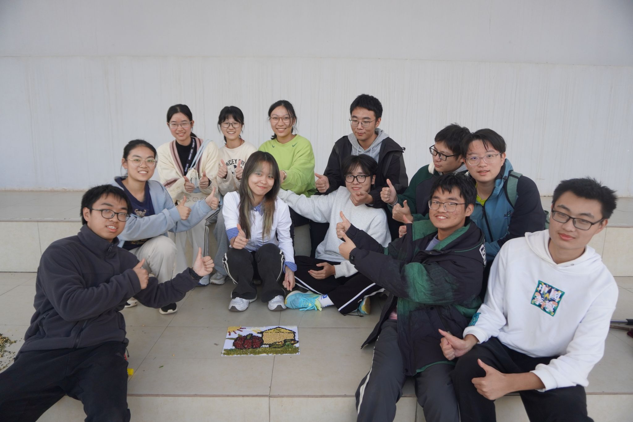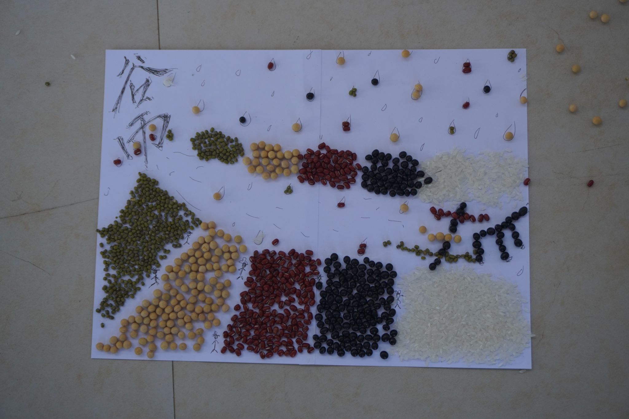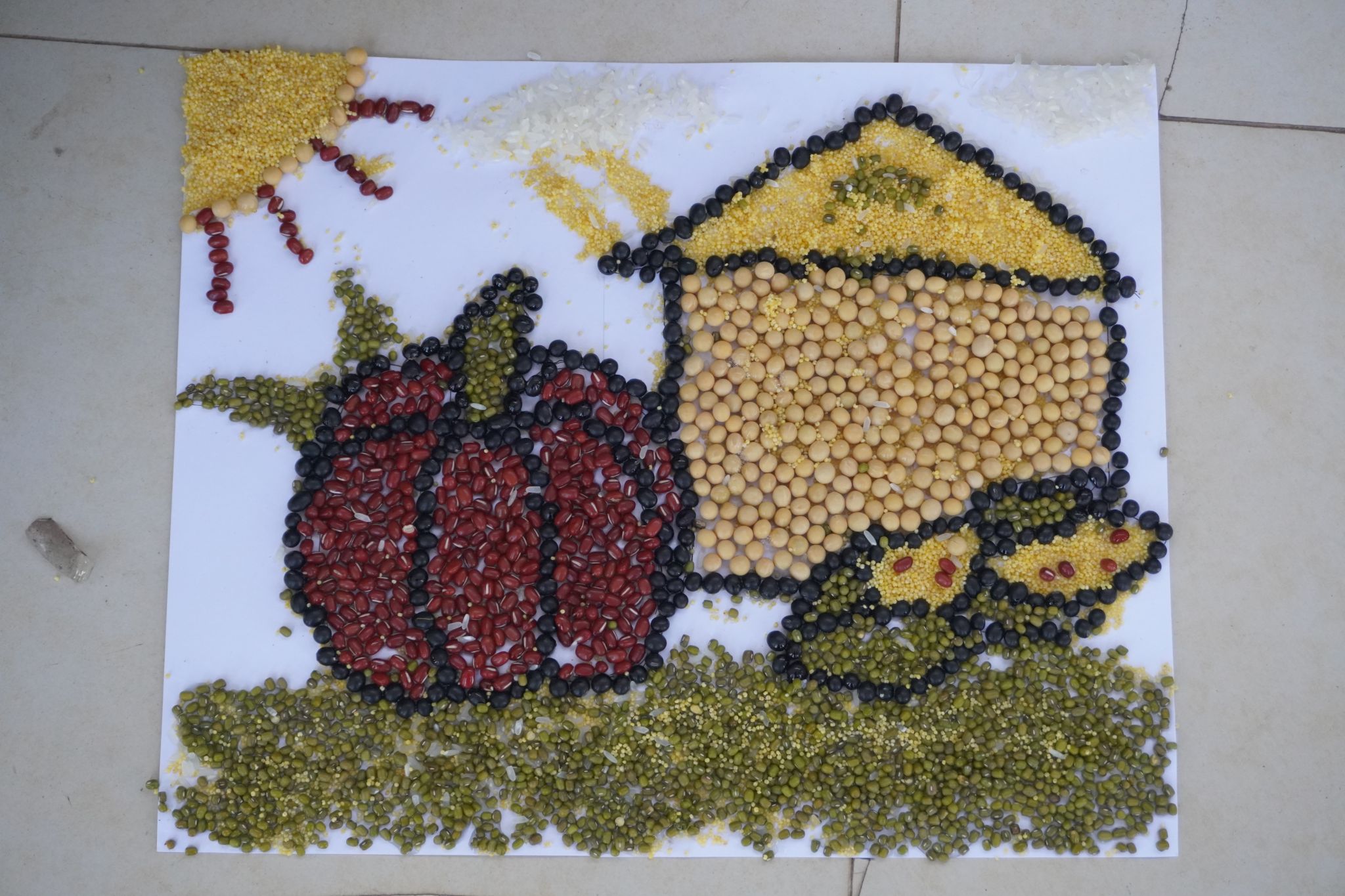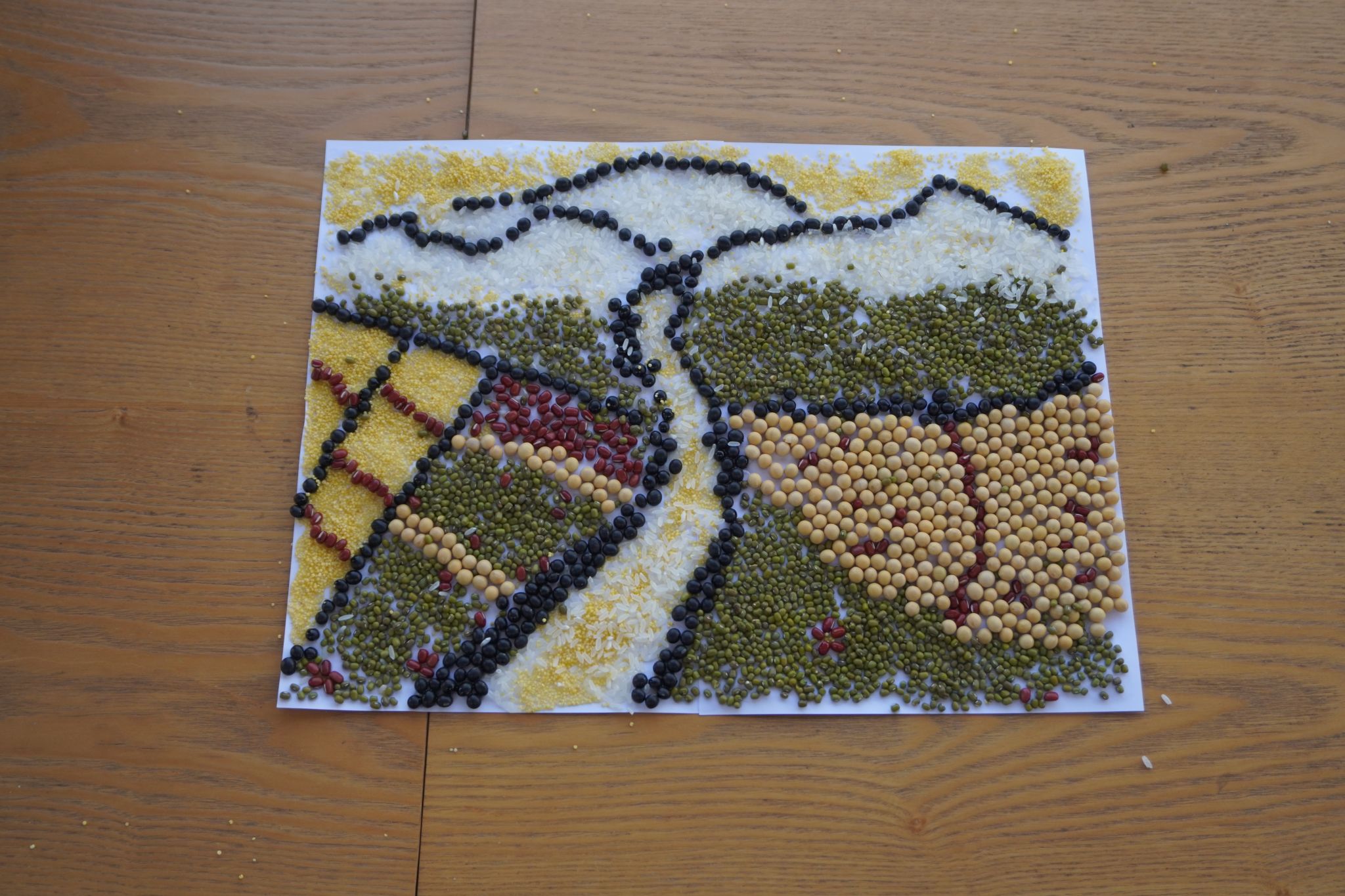 在创意五谷画中,长时间创作后依然耐心细致,参赛者们巧手粘贴,共绘谷物画卷。