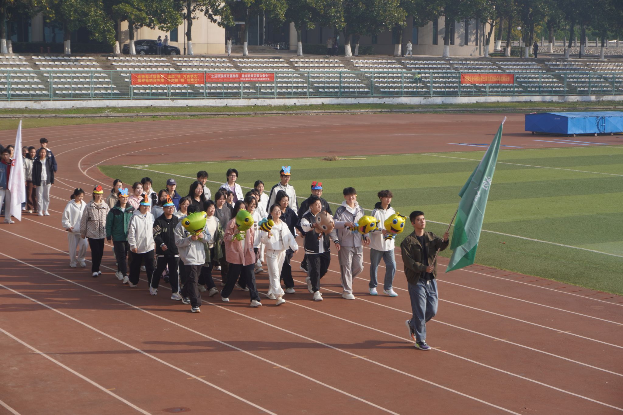 活动在主持人热情的开场中正式启动。五院方阵精神抖擞、步伐铿锵,以昂扬的姿态展现出学子们蓬勃的朝气,也为整场运动会拉开了精彩序幕。