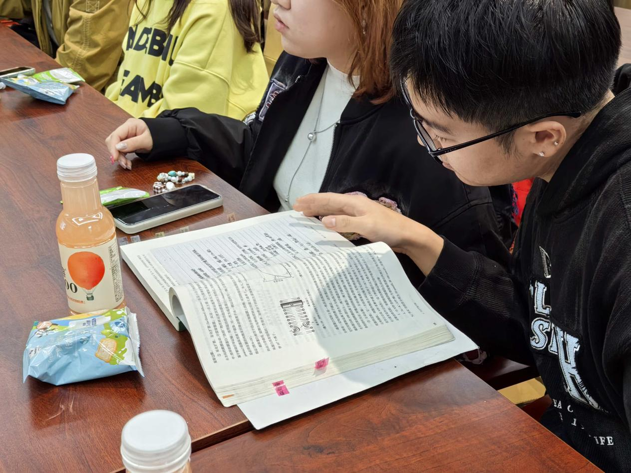 石一涵、胡皖豫学姐现场细心讲解学习心得,备考方法,从复习节奏到应试得分,每一句都是亲测有效的 “避坑指南”;此外,两位学姐还分享了关于心态调节,日常生活规划的小技巧,让低年级的班委们对大学生活有了更深刻的体会。