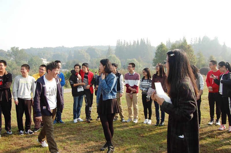 本次活动由多个趣味性强的小游戏组成。首先是“蟹王蟹后”,通过石头剪刀布决出胜负,胜者可获得小零食一袋,而输的则要用方言朗诵古诗。紧接着的“一块五毛”,男生女生通过抱团凑出对应钱数,同学们的情绪很快便被调动起来。随后所有人分成五组,分别由邵子恺、芦笛、袁瑞忠、温伟东和丁浩毅带队,各组男女搭配,参与竞技。通过几人几脚、你划我猜、定向越野三个环节的比拼,最终温伟东带领的第四组勇夺第一。每个小组都在活动结束后获得了精美的奖品。