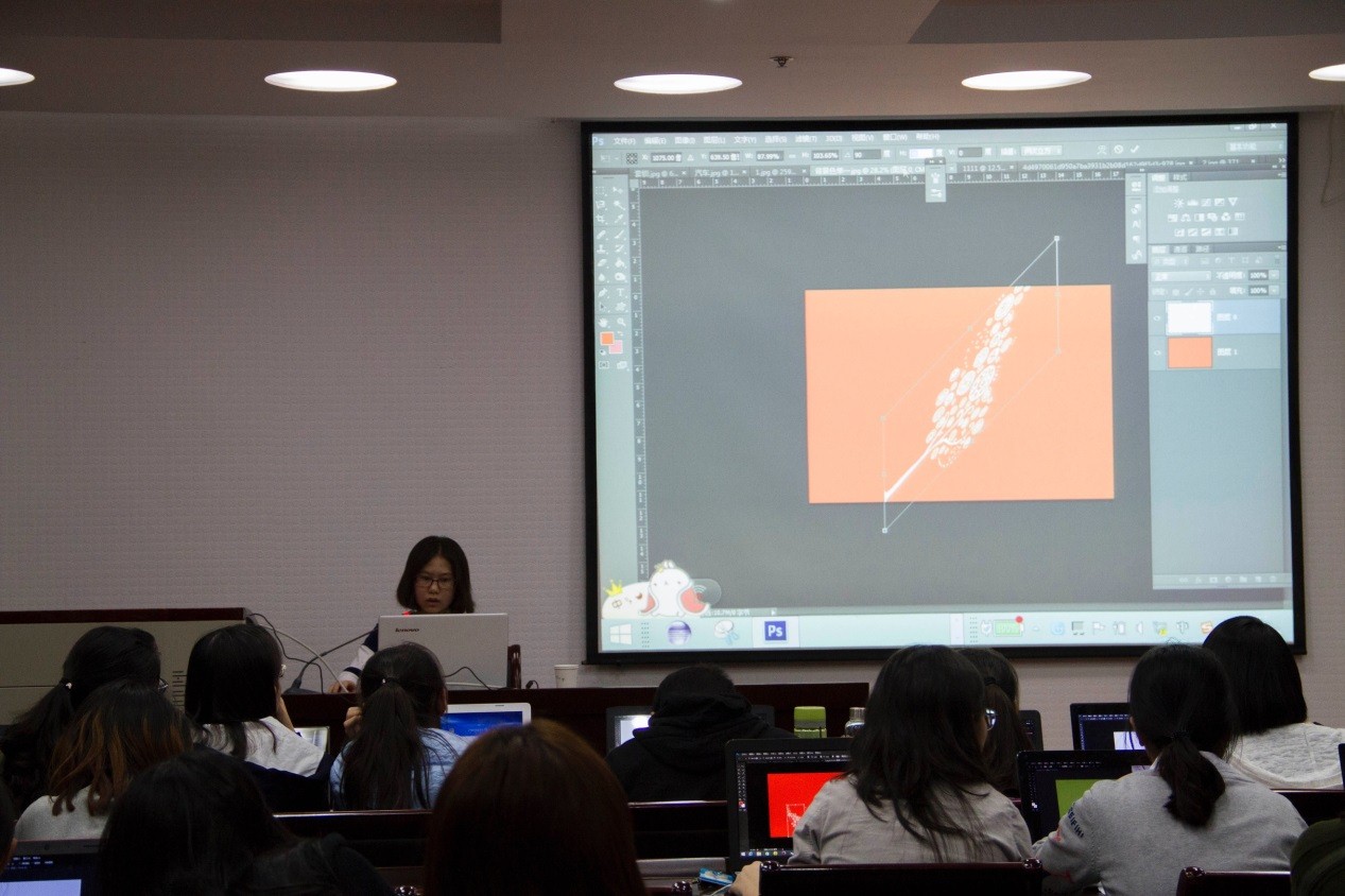 会上,尚同学详细介绍了PS软件的应用基础、海报制作、字体设计、活动照片处理等一系列常用图片处理方法,并结合照片对部分图片编辑工具进行演示。在讲解过程中,尚同学积极引导在场学生亲自动手操作,加深同学们的印象,真正做到学以致用。在培训结束之后,同学们纷纷表示受益匪浅,并且希望学院今后能更多的开展类似活动。