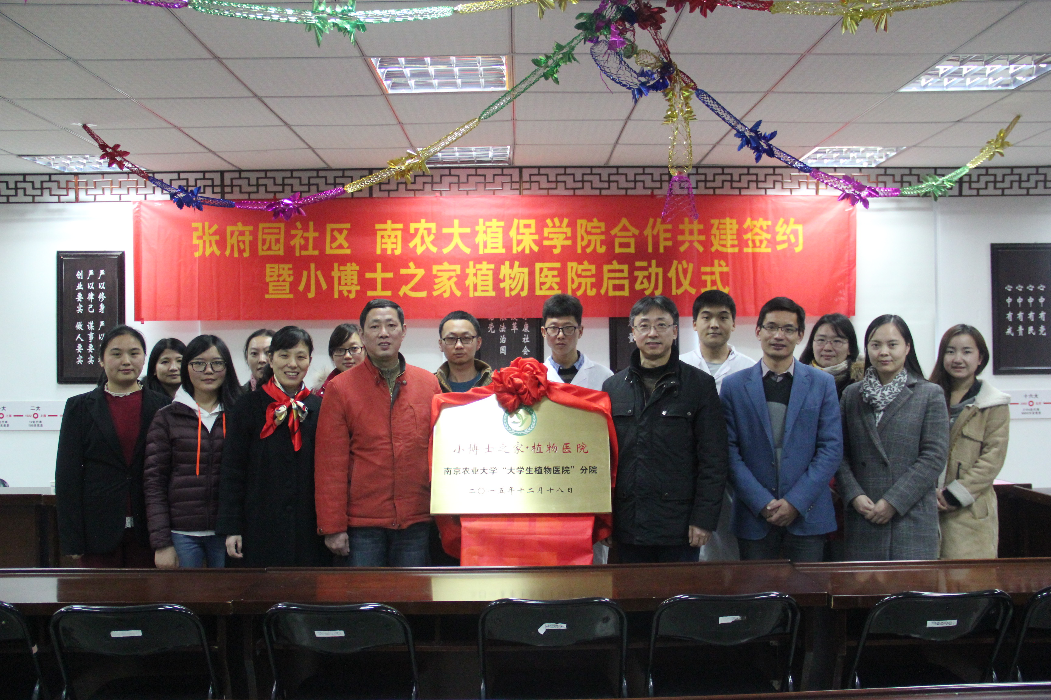 赴南京朝天宫街道,与张府园社区共建大学生植物医院社区分院。植保院党委副书记黄绍华、副院长高学文、张府园社区书记吴波等参加。
