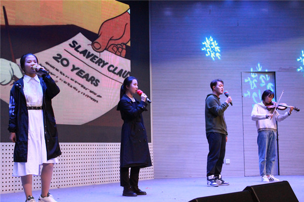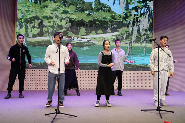 一段活力四射的开场舞后,晚会第一篇章“敬意竭诚”拉开帷幕。合唱团用轻松愉快的歌声和动感十足的舞蹈诠释了歌曲《New boy》,收获了观众的阵阵掌声。合唱团与器乐团联合带来的节目《南农喜来乐》将传统艺术与现代审美相结合,为大家带来了独特的视听体验。器乐团一曲《霍元甲》,锣鼓激昂,收获叫好连连。植保211班带来了诗朗诵《雪落在中国的土地上》,情绪饱满地传递着对祖国和人民的热爱。