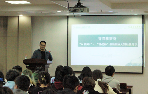 杨纪潇从自身经历入手,层层递进,作了关于“互联网+”、“挑战杯”等创新创业大赛经验的分享。他指出,“双创”即“创新+创业”,参与“双创”可以通过参加 “互联网+”大学生创新创业大赛、“挑战杯”全国大学生课外学术科技作品竞赛和“挑战杯”中国大学生创业计划大赛的“三大赛”方式。创业之路中,创意想法是挑战底色,脚踏实地是奋斗关键。杨纪潇详细介绍了三大赛的比赛时间、参赛组别、具体流程和奖项设置等。三大赛的意义绝不仅仅是保研、考研加分的冰冷冷数字,更是补足社会盲区、积累社会经验的绝佳练兵场。市场调研是前提,创意思维是开篇,构建创业计划书则是将脑中万千山河落于实际的万里长征第一步。如何做出有实际意义和价值的课题、如何落落大方地演讲路演PPT,杨纪潇展示了创新创业竞赛的一些具体技巧和功能性准备。同时强调,要针对自己的生涯规划和自我能力测评,因地制宜因材施教采取相应的行动,才能筑梦蓝图、构建梦想。