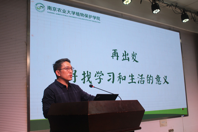 开学第一课上,邵刚以《再出发,寻找学习和生活的意义》为主题,从“大学学什么”、“植保是什么”、“毕业干什么”三个问题入手,生动解说了几个大学常见的误区,具体介绍了植保学科的魅力所在。他指出,大学生应该有清晰的目标,详细的规划和坚定的行动;要锻炼自学能力,养成创新意识;要不断去寻找自己的价值,挖掘自己的潜力,扩大自己的影响。中国的进步、社会的发展,靠新生代的大学生们。