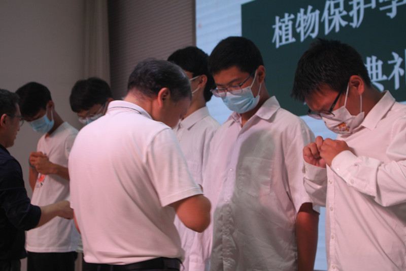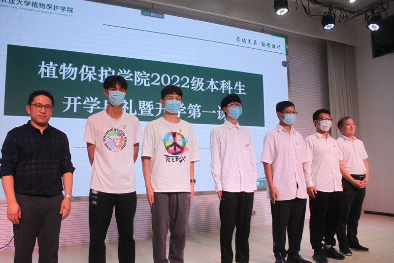 开学典礼最后,邵刚、张正光为五个班的新生代表佩戴院徽,将“厚德至真,勤学敦行”的植保文化与精神传递给新生,欢迎新鲜血液的加入,寄语新生争做爱国为农的新型高素质植保人。