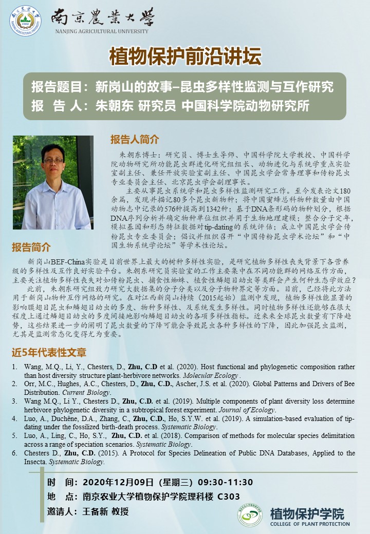 植物保护前沿讲坛:新岗山的故事–昆虫多样性监测与互作研究