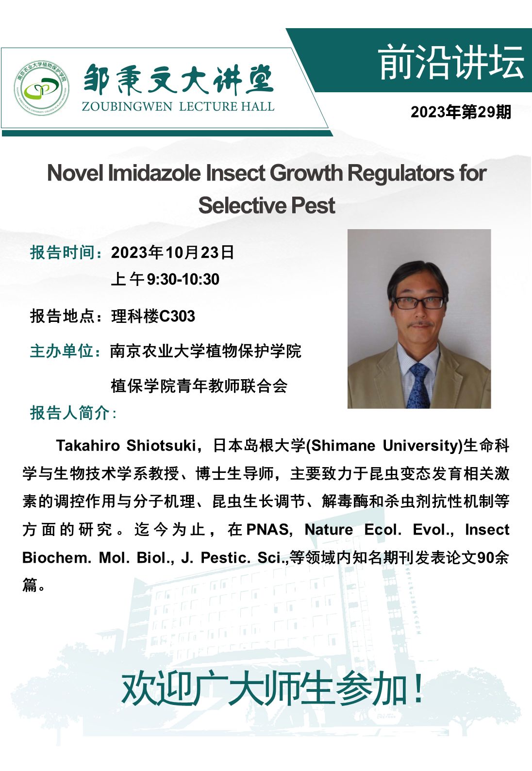 邹秉文大讲堂之前沿讲堂—Novel Imidazole Insect Growth Regulators for Selective Pest