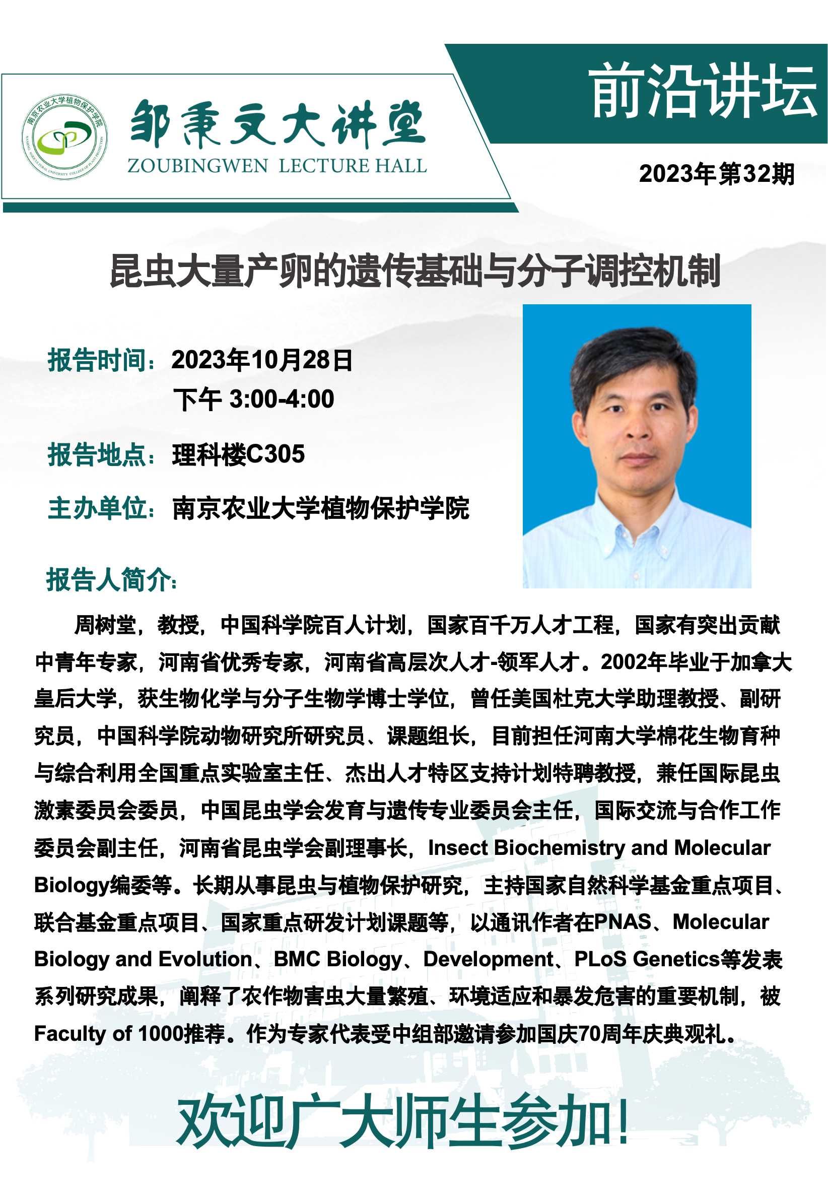 邹秉文大讲堂之前沿讲堂-昆虫大量产卵的遗传基础与分子调控机制