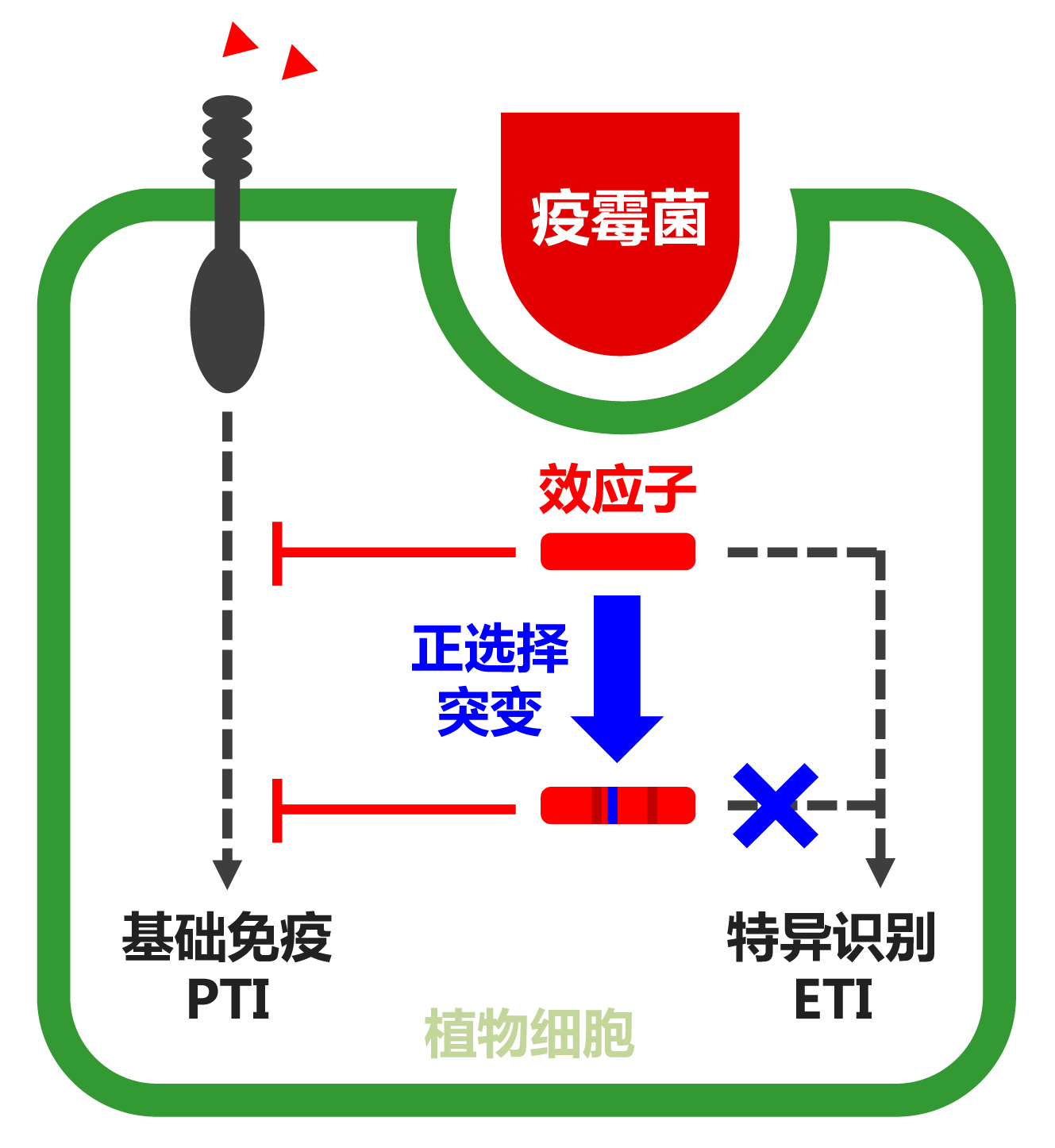 病原菌在攻击植物的过程中,能够分泌一系列效应蛋白到植物细胞间或细胞内干扰寄主的防卫反应。对该团队前期鉴定到的大豆疫霉致病关键效应蛋白Avh238(Plant Cell,2011),本项研究中发现:我国不同大豆主产区的大豆疫霉群体中Avh238存在丰富的序列多态性;由于受到来自寄主对病原菌防卫的选择压力,疫霉群体中Avh238的序列发生有益的点突变,使得新蛋白既能够维持效应蛋白本身的毒性功能,又能够逃避寄主的免疫识别。病原菌的快速变异是导致抗病品种失去作用的根本原因,该发现从分子水平上揭示了来自寄主植物的强烈选择压力驱动效应蛋白进化,使得病原菌得以逃避寄主防卫反应,从而使寄主丧失对病原菌的抗病性的机理,对作物持久抗病的分子设计具有重要理论价值。