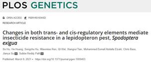 苏建亚教授团队在知名期刊PLoS Genetics在线刊发了题为 “Changes in both trans- and cis-regulatory elements mediate insecticide resistance in a lepidopteron pest, Spodoptera exigua”的研究论文。论文综合解析了甜菜夜蛾对毒死蜱、氯氰菊酯、溴氰菊酯等多种杀虫剂产生抗性的原因,揭示了反式作用因子与顺式调控元件协同调控解毒酶基因组成型表达上调,并介导多药抗性的分子机理。