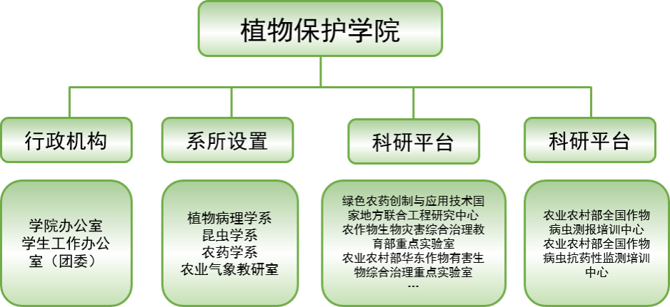 H小说 设有植物病理学系、昆虫学系、农药科学系和农业气象教研室4个教学单位,建有绿色农药创制与应用技术国家地方联合工程研究中心、农作物生物灾害综合治理教育部重点实验室、农业农村部华东作物有害生物综合治理重点实验室等10个国家和省部级科研平台,以及农业农村部全国作物病虫测报培训中心、农业农村部全国作物病虫抗药性监测培训中心2个部属培训中心。